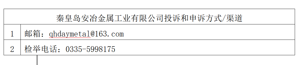 當前位置:首頁-資訊中心-秦皇島安治金屬工業(yè)有限公司投訴和申訴方式/渠道